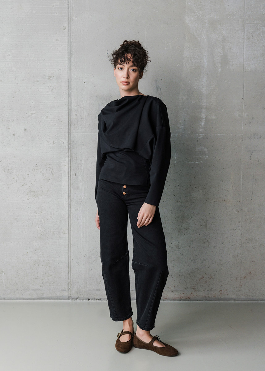 Crna Nex bluza donosi minimalističku siluetu s lakoćom pokreta. Izrađena od mekane mat viskozne mješavine, pruža osjećaj ugode i prilagođava se tijelu bez stezanja. Jednostavna, ali izražajna — savršen temelj suvremenog outfita.