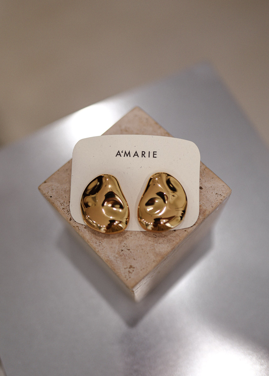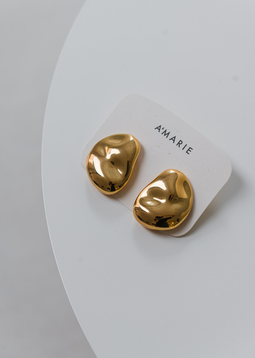 Naušnice Mista Gold donose skulpturalni oblik i visoki sjaj koji podsjeća na rastopljeno zlato. Njihov organski, nepravilni dizajn čini ih bezvremenskim statement komadom koji podjednako pristaje uz dnevne i večernje kombinacije. Laganih su linija, ali snažnog vizualnog dojma – idealan izbor za ljubiteljice modernog minimalizma s luksuznim naglaskom.